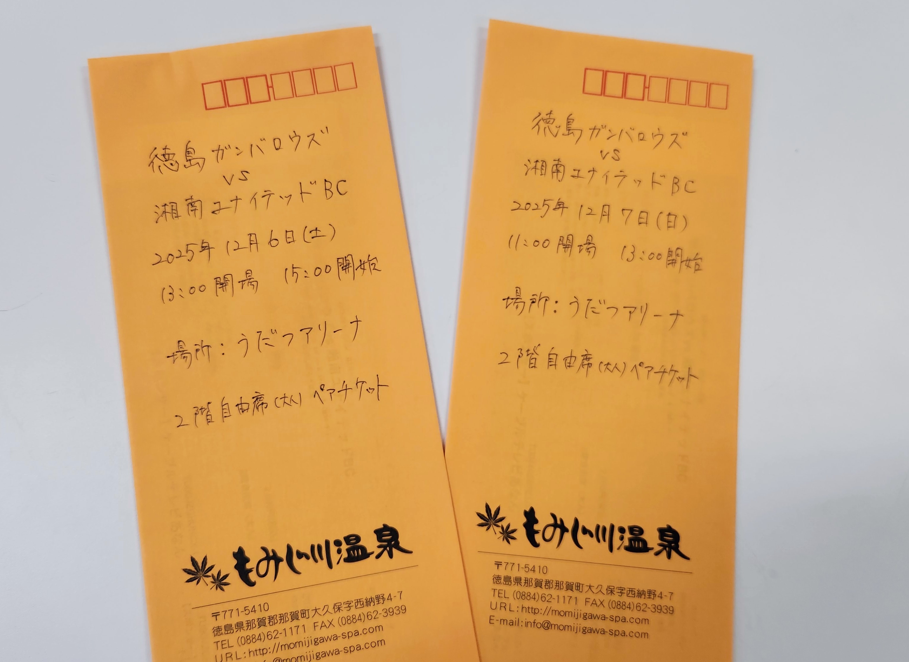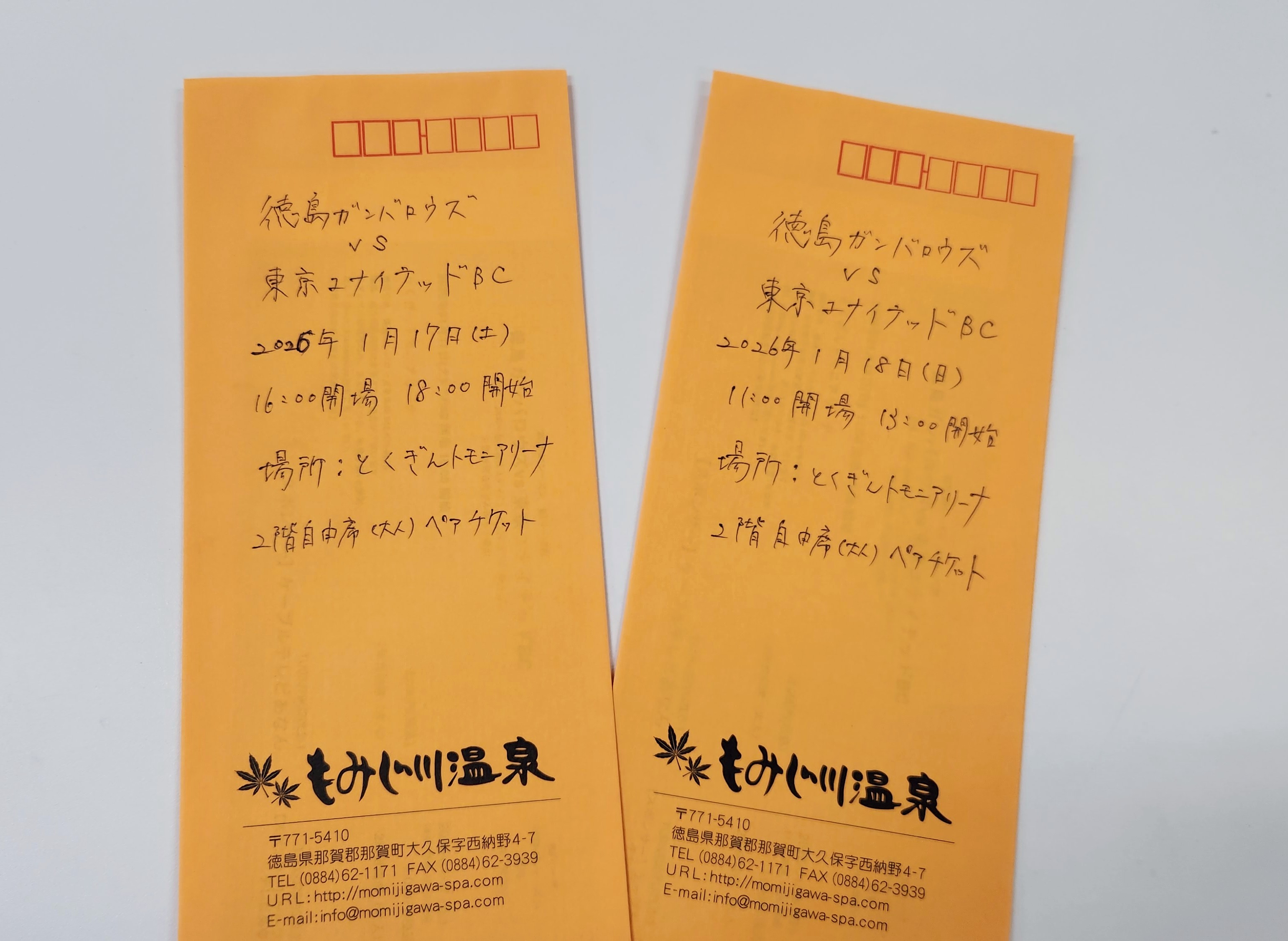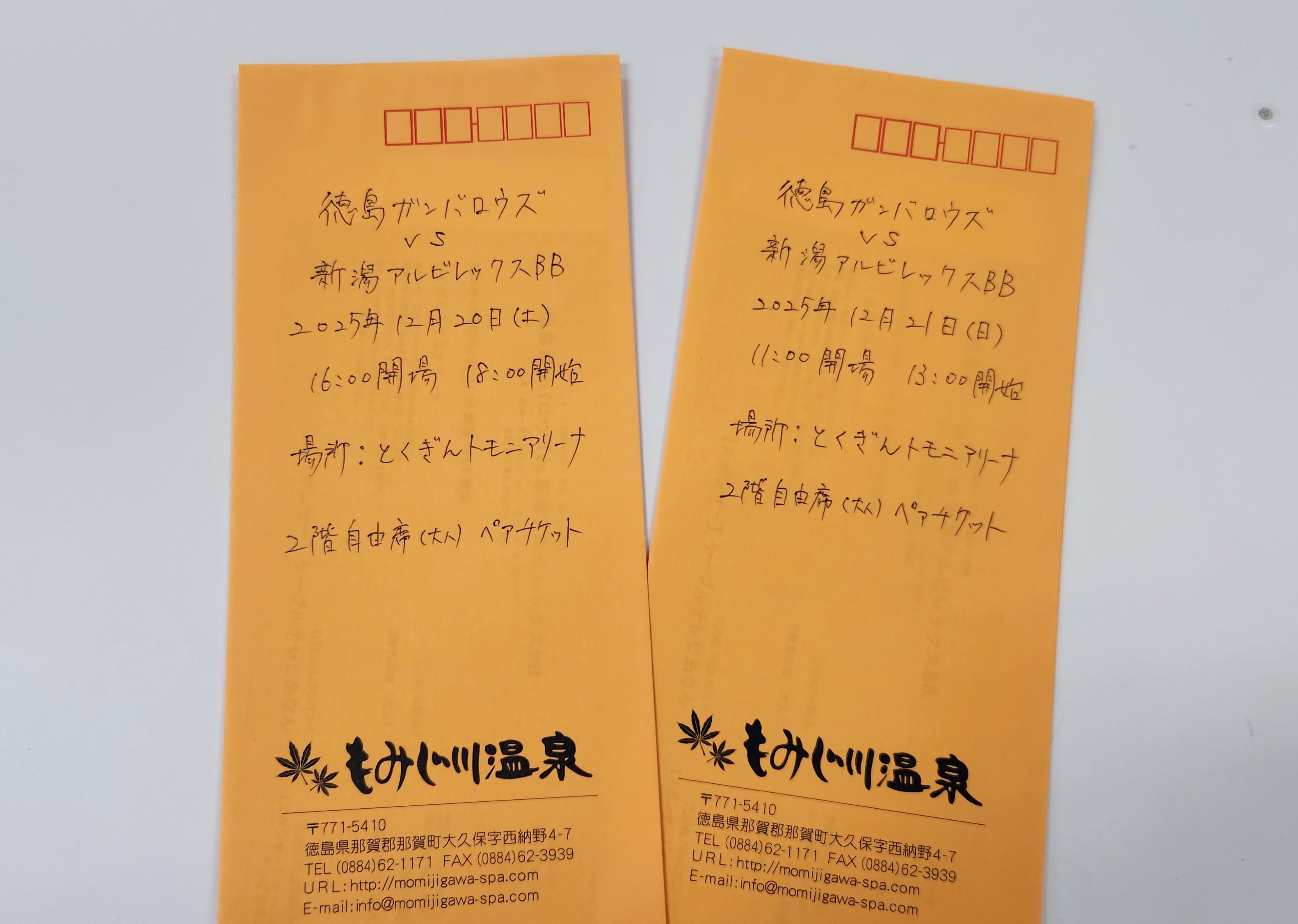 ・徳島ガンバロウズ観戦ペアチケット 計6点 (12月~1月の試合)