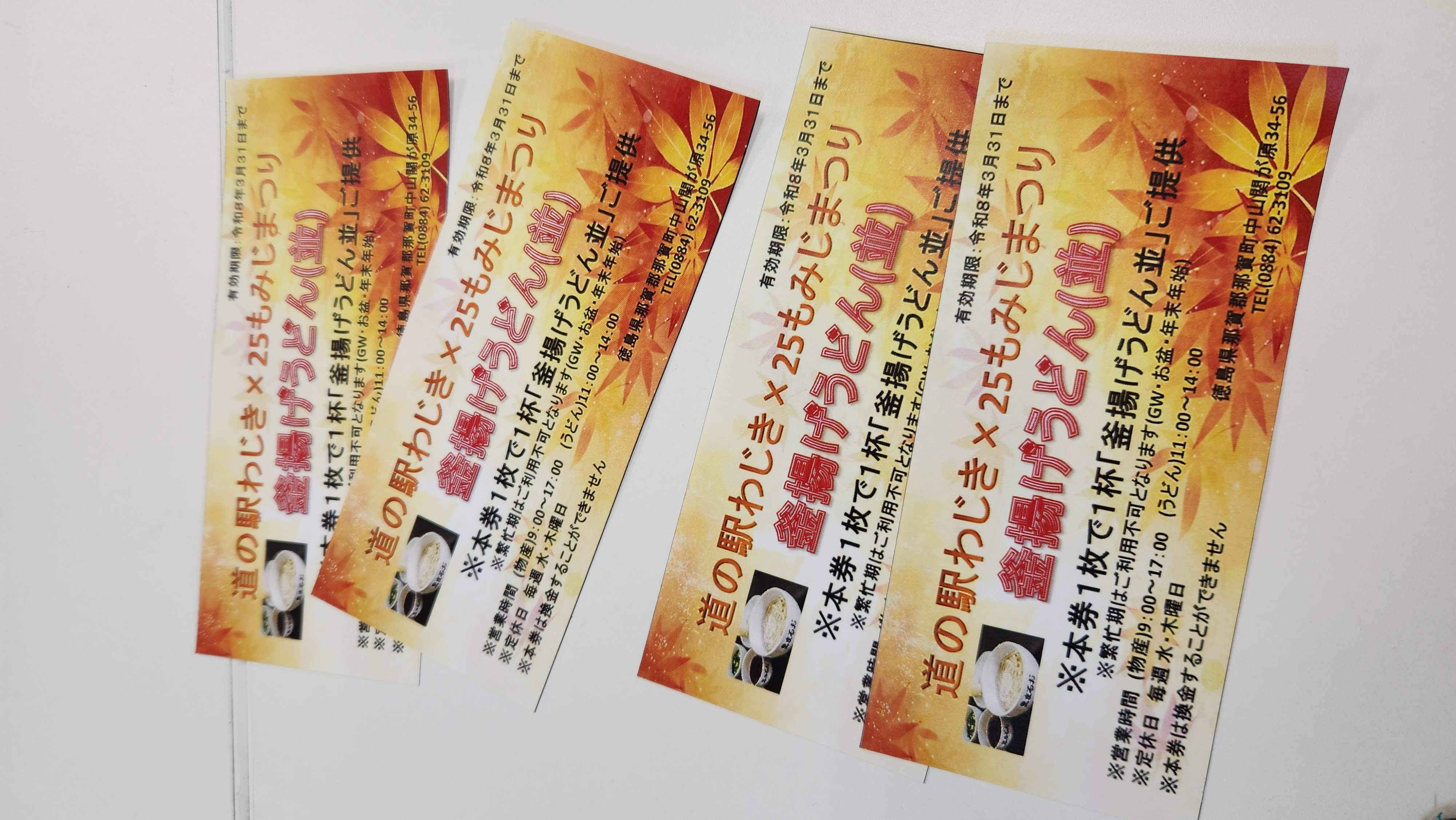 ・道の駅わじきまるおの釜揚げうどんペアチケット 3点